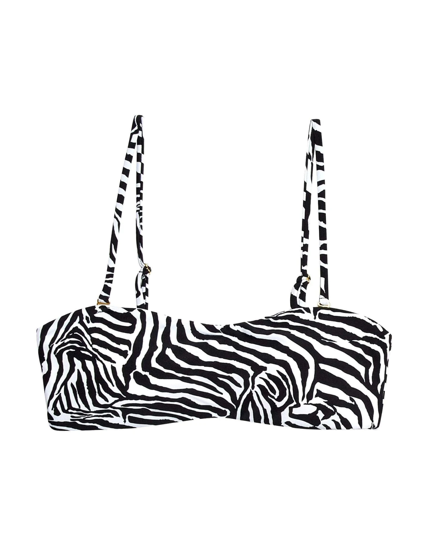 The Beach Bunny London Bralette Bikini Top in Zebra features pullover design with removable/adjustable straps. This top pairs perfectly with the Chrissy Micro Tango Bottom.
