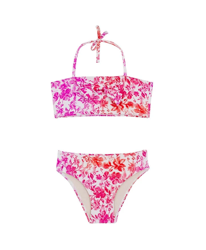Aa adorable PQ Swim kids bikini with halter straps and a bow on the front. Moms can match their daughters in one of the PQ Swim Azalea sets for adults! If unsure of what size to pick, size up.
