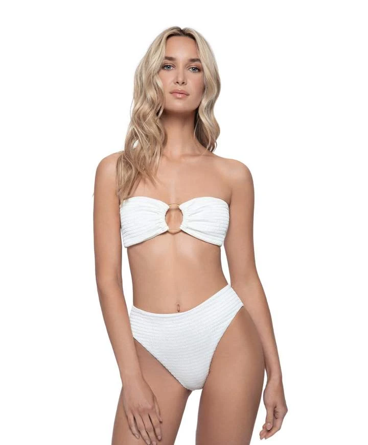 You get a comfortable, flattering look with these high waist bikini bottoms in the PQ Swim Pure print. Looks best when paired with either of the PQ Swim Pure tops!