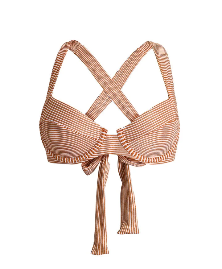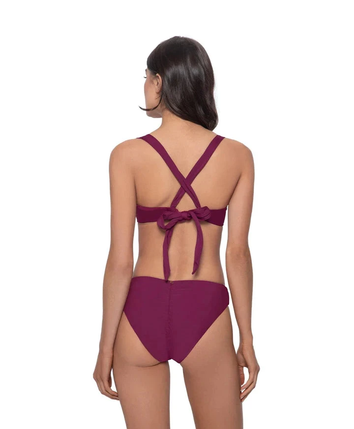 This halter will give you that extra lift you are looking for. Comes with supportive underwire, crossed straps, and a tie closure in the back. Pair it with the matching PQ Swim Summer Hibiscus reversible basic ruched bottoms for the perfect set. Does not have removable padding.