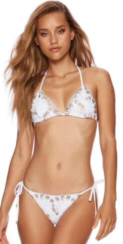 The Beach Bunny Rib Knot Bralette Bikini is a faux t-shirt front tie top that looks relaxed yet super sexy. This is a simple front tie top with snap front buttons and a pullover style that is paired with the Beach Bunny Rib Tide Skimpy.