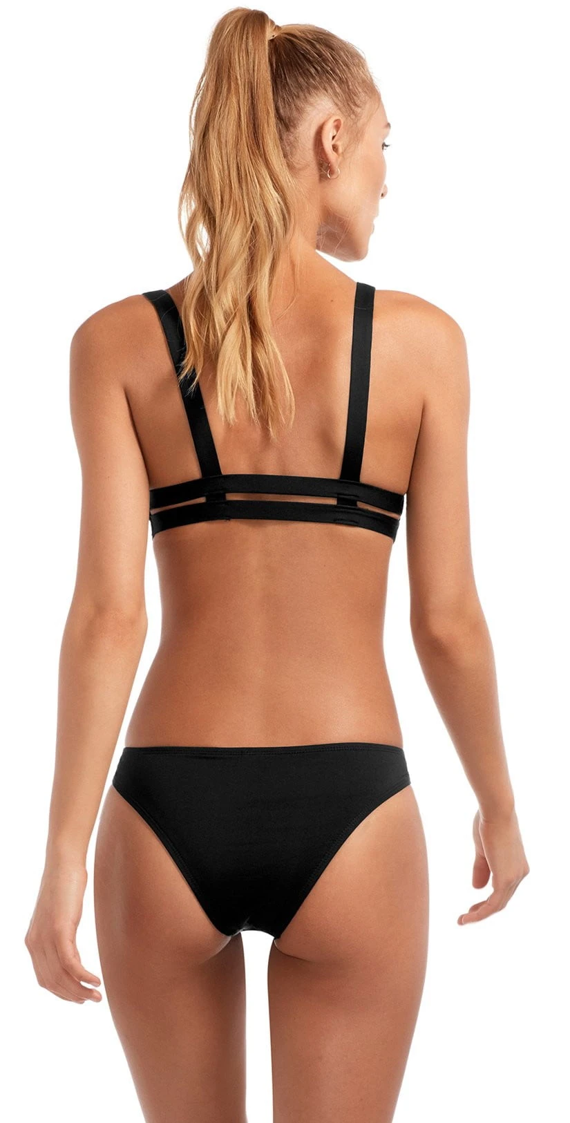 The Vitamin A EcoLux Neutra Top is a sophisticated and chic solid Black Bralette featuring a double under-bust band for added support and lift that continues on the back. Pullover design for comfortable all day wear! Pair with the Vitamin A Black EcoLux Teeny Hipster!